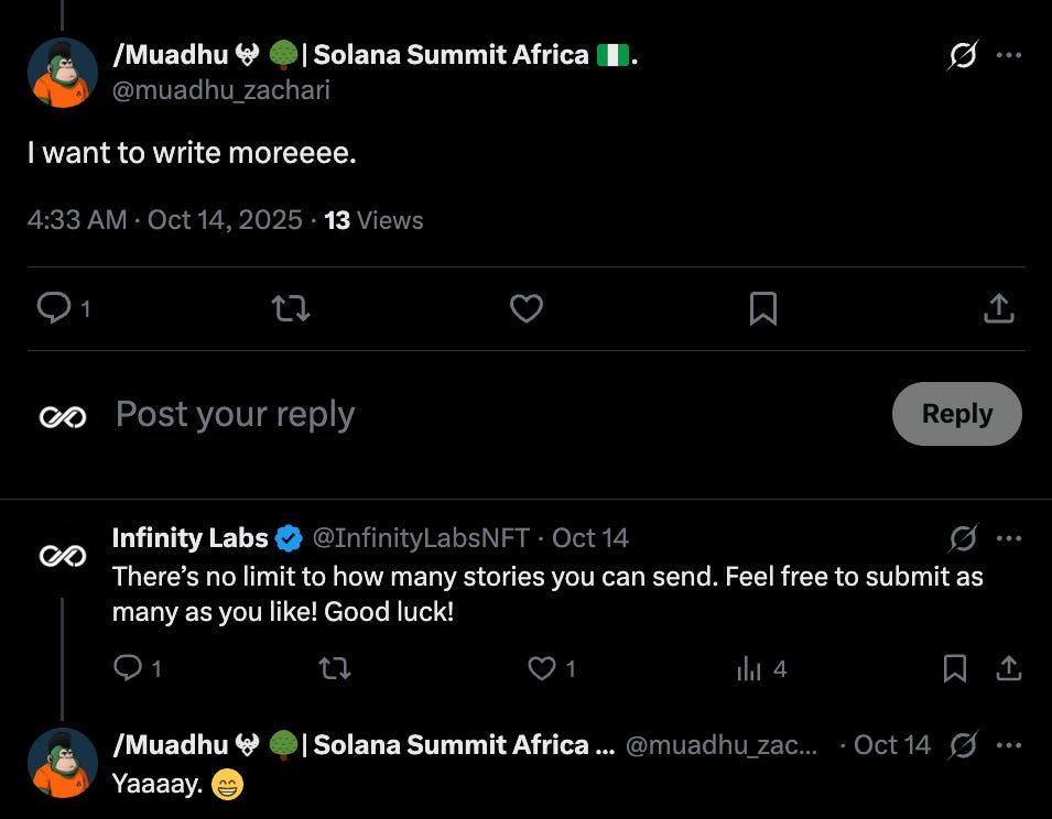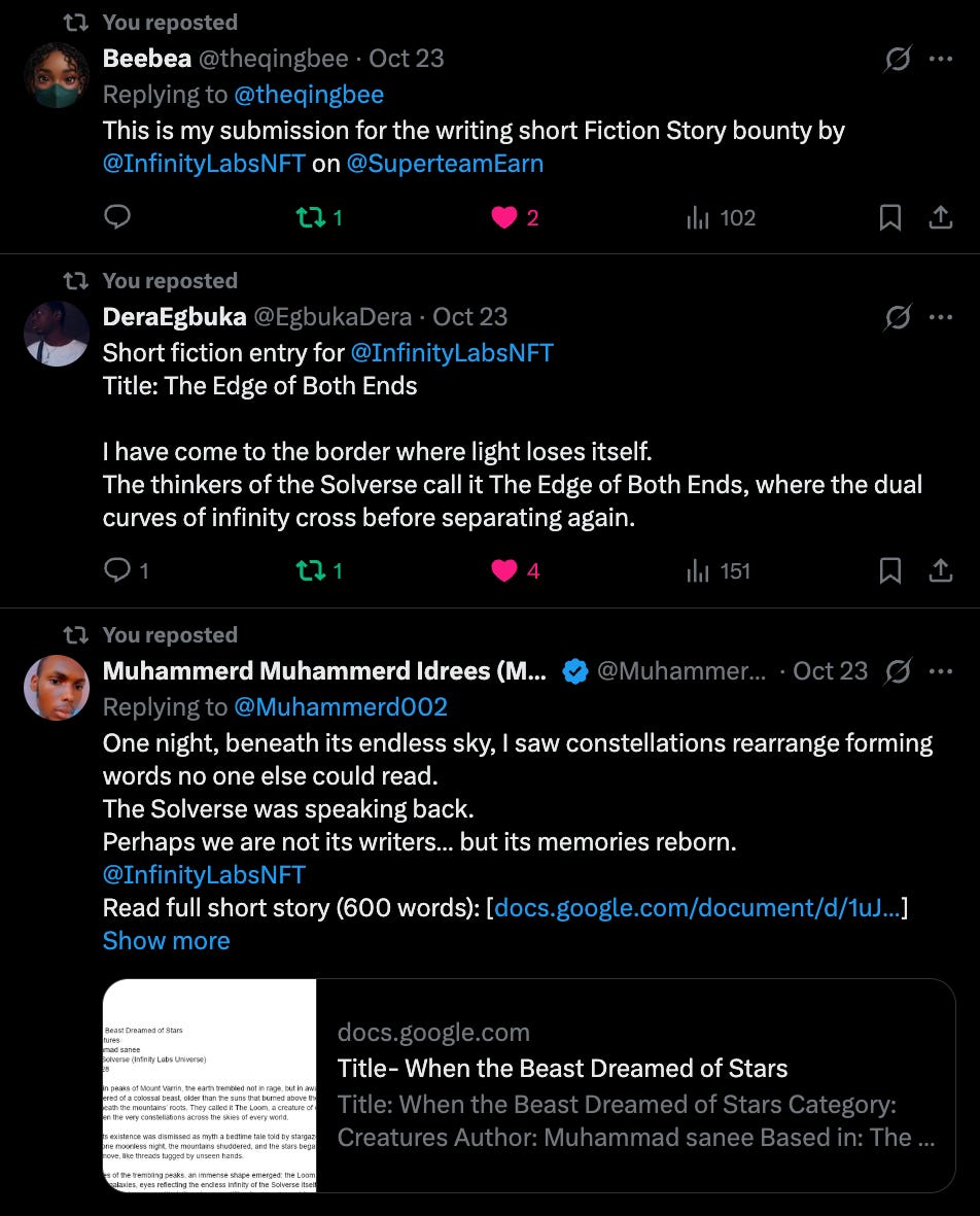 Thanks to all the amazing writers who submitted their stories! We’re so excited to explore the worlds you’ve crafted within the Infinity universe. Wishing everyone the best of luck!